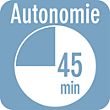 - Autonomie jusqu’à : 45 mn
